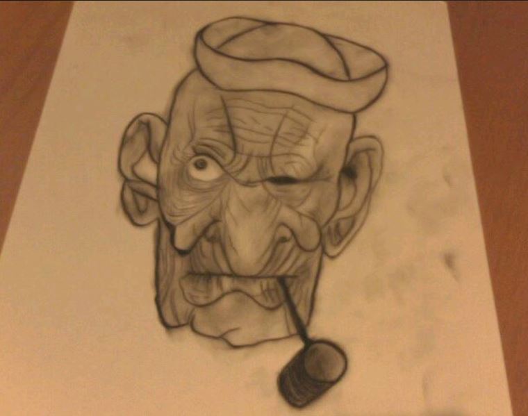 Dibujo de popeye el marino hecho a carboncillo en formato Din A4.
