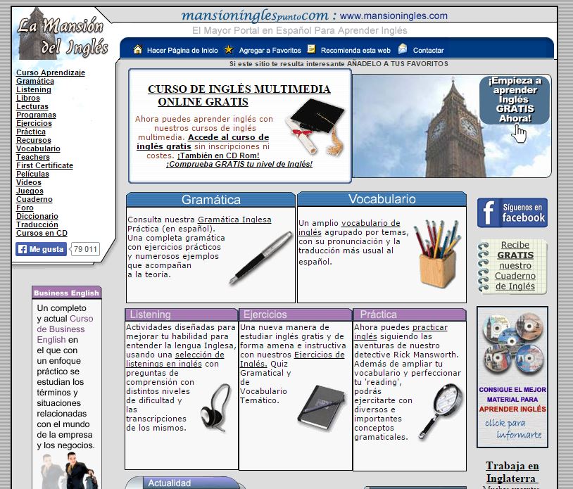 Web la Mansión del Inglés 25.09.2015 23:55 Esta web es bastante completa, tiene ejercicios de listenings, gramática, reading, vocabulario, etc. www.mansioningles.com/